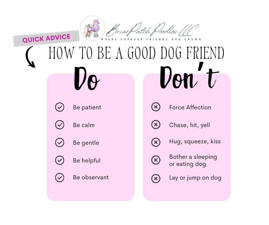 For my children, I’ve found that a list of do’s and dont’s has been helpful when teaching them responsibility and empathy for dogs.